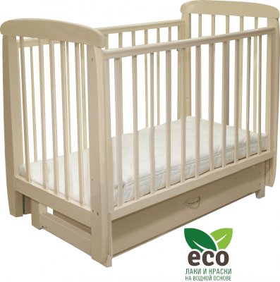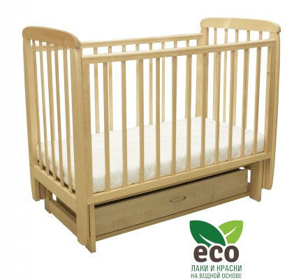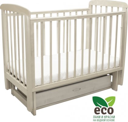 Кроватка "Соня 04" имеет механизм качания поперечный маятник. Механизм качания фиксируется. Возможен вариант с ящиком.