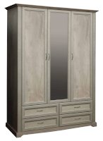 Данная модель – уменьшенная версия шкафа «Сохо» 32.01 - не менее удобная, просто более компактная, а в чем-то даже более универсальная. Два закрытых дверных полотна справа и слева и изящная зеркальная створка в центре создают мебельную терцию, наполненную воздухом и светом. Зеркало отражает пространство и таким образом визуально его расширяет. Слева расположен отсек для одежды на вешалках – он снабжен металлической штангой, которая выдерживает вес до 20 кг. Над штангой расположена удобная горизонтальная полка, которая служит в качестве антресоли, куда можно убрать сезонные вещи, либо предметы, которыми хозяева пользуются не так часто. Можно надеть любимое платье или костюм, закрыть дверцу шкафа и тут же оценить себя в зеркале. Очень удобно! Справа – отсек с полками, на которых размещается одежда, а также коробки-боксы с вещами или обувью. Каждая полка выдерживает до 5 кг – это достаточно для большого количества вещей. Внизу находятся четыре выдвижных ящика: два плюс два. Верхние удобны для белья и трикотажа, нижние – для обуви. Однако, решать вам – никто не вправе ограничивать фантазию хозяев шкафа. Благодаря современным технологиям дверцам и выдвижным ящикам не нужны доводчики – они легко и дружелюбно распахиваются и выдвигаются навстречу по первому желанию хозяев. Шариковые направляющие обеспечивают очень плавный ход. Дверцы и ящики снабжены металлическими ручками, которые учитывают анатомию ладони, поэтому ими очень удобно пользоваться.